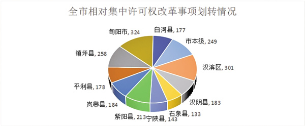 一是相對集中行政許可權(quán)改革取得階段性成果。按照省市相對集中行政許可權(quán)改革工作統(tǒng)一部署,2021年度市級249項、11個縣(市區(qū)、高新區(qū))共2094項行政許可事項劃轉(zhuǎn)至同級行政審批服務(wù)局集中實施。按照“減環(huán)節(jié)、減時限、減材料、減跑路次數(shù)”的原則,對劃轉(zhuǎn)事項進(jìn)行流程再造,審批機(jī)構(gòu)人員從原有14個部門、43 個科室、150余名干部減少為1個部門、4個科室、14名干部,審批印章從原有20余枚減少為1枚,審批窗口從原有10個減少為6個,初步實現(xiàn)審批環(huán)節(jié)減少、審批速度提速、審批成本降低的“一減一提一降”目標(biāo),所有劃轉(zhuǎn)事項審批環(huán)節(jié)、材料減少30%以上,平均提速50%以上,群眾跑路次數(shù)減少40%以上。