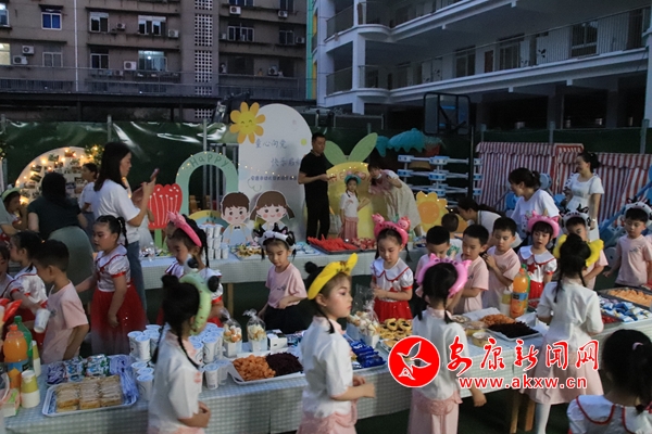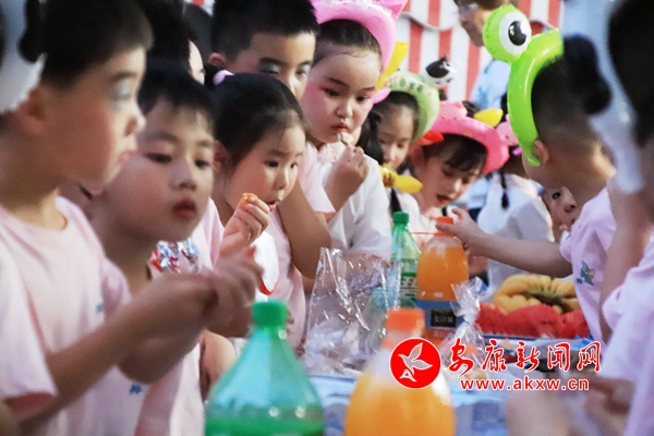 一段溫馨的共話離別。演出結(jié)束后,幼兒園給小朋友們準(zhǔn)備了各種美食,在五彩斑斕的夜光下自選幾種美食,好朋友們?cè)谝黄,品嘗美食,聊聊幼兒園開心的事情,談?wù)勏矚g的東西。