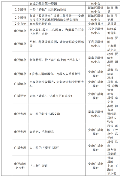 獲得本次安康新聞獎作品共計114件,其中一等獎25件(報紙類10件,電視廣播類10件,新媒體類5件)、二等獎40件(報紙類15件,電視廣播類15件,新媒體類10件)、三等獎49件(報紙類20件,電視廣播類16件,新媒體類13件)。張俊等16名同志獲得安康市優(yōu)秀新聞工作者稱號。從評選的范圍、內(nèi)容、體裁、形式等方面看,都好于往年。