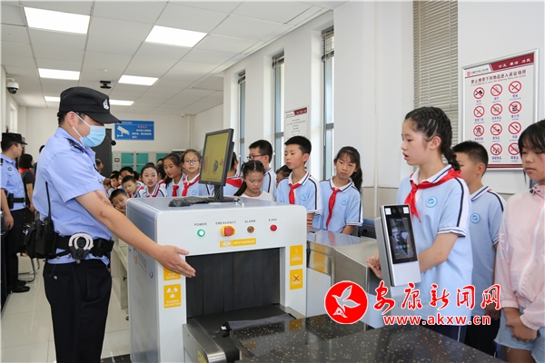 同學(xué)們?cè)诜ň瘞ьI(lǐng)下,依次經(jīng)過(guò)安檢門。更讓同學(xué)們好奇的是法警小哥的警用裝備,同學(xué)們認(rèn)真聆聽(tīng)法警對(duì)每樣警用裝備的講解,還不時(shí)發(fā)問(wèn),興趣盎然。隨后,同學(xué)們依次參觀了法庭、羈押室和全國(guó)維護(hù)婦女兒童權(quán)益先進(jìn)集體工作室,對(duì)法庭開(kāi)庭審理案件、羈押犯罪嫌疑人和保護(hù)婦女兒童權(quán)益等知識(shí)有了更深入的認(rèn)識(shí)和了解。
