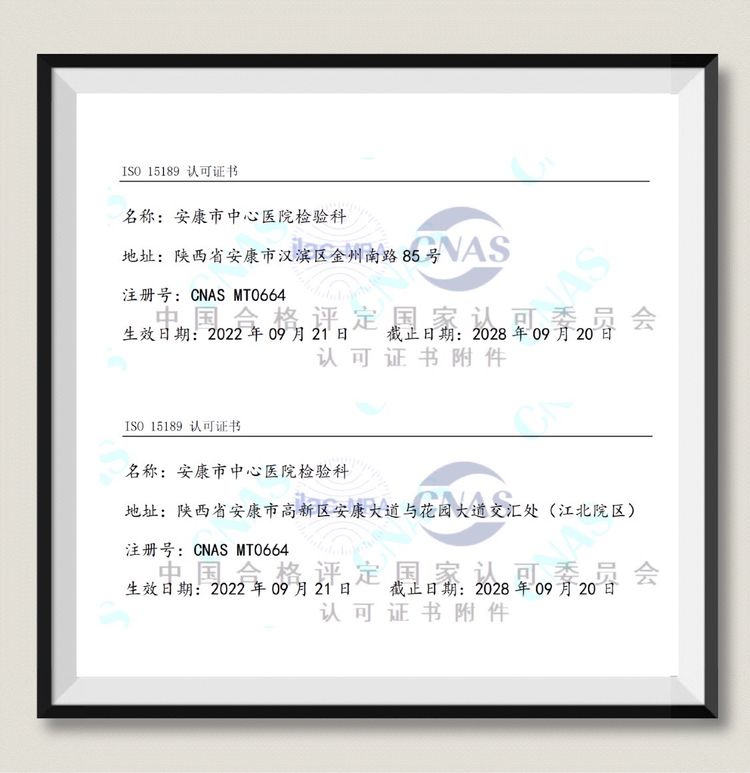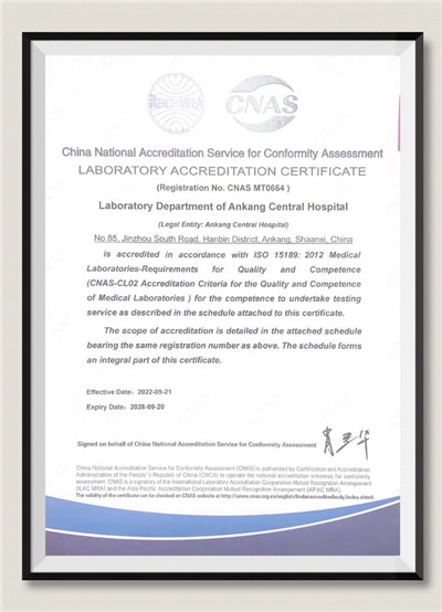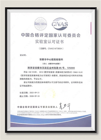 2022年6月24日-26日,由中國合格評定國家認(rèn)可委員會(CNAS)委派的八名評審專家經(jīng)過為期三天的“線上+線下”綜合評審,安康市中心醫(yī)院檢驗科順利通過ISO15189現(xiàn)場評審。針對評審專家提出的不符合項,經(jīng)過兩個月整改及持續(xù)改進(jìn),安康市中心醫(yī)院檢驗科得到了國家認(rèn)可委(CNAS)的正式認(rèn)可,并獲得證書。