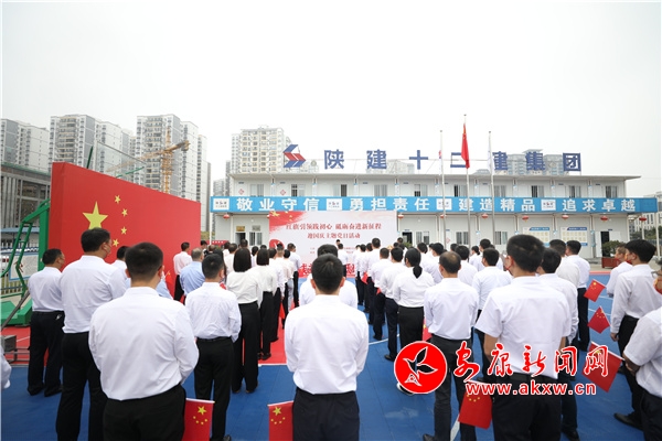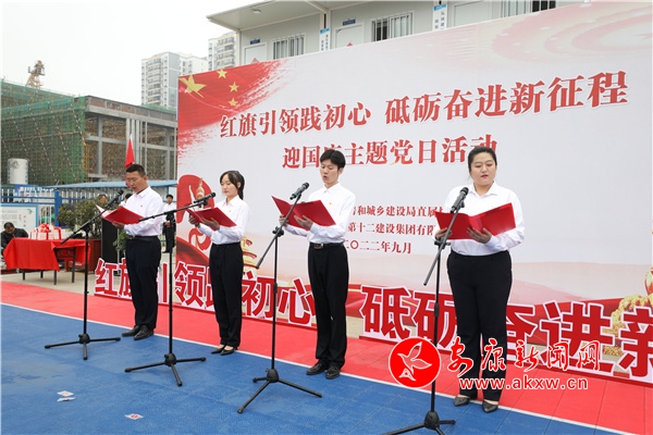 上午9時,活動在莊嚴的升旗儀式中拉開序幕,伴隨著《義勇軍進行曲》慷慨激昂的旋律,鮮艷的五星紅旗冉冉升起。在場全體人員面向國旗行注目禮,齊唱國歌,共同祝福偉大祖國更加繁榮昌盛。升旗儀式結束后,在活動現場,開展了紅色朗誦《我的祖國》,市住建局向陜建十二建集團捐贈“紅色”書籍。同時,市住建局工作人員進行了《建設工程項目管理規(guī)范》《建筑施工現場環(huán)境與衛(wèi)生標準》《 建筑施工高處作業(yè)安全技術規(guī)范》等城市建設及建筑行業(yè)規(guī)范宣講;顒幼詈,全體人員合唱《我和我的祖國》,激昂的歌聲將活動推向了高潮。