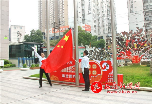 8時30分,升國旗儀式正式開始。四位升旗手邁著堅定的步伐護送國旗走到旗桿下。伴隨著雄壯的國歌,鮮艷的五星紅旗冉冉升起,全體人員莊嚴(yán)站立,面向五星紅旗行注目禮,高唱國歌,抒發(fā)愛國情懷。