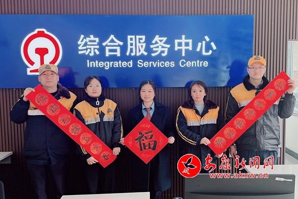 Wfj安康新聞網(wǎng) 圖為該站職工在貨運(yùn)綜合服務(wù)中心向全國人民送上新春祝福Wfj安康新聞網(wǎng)
