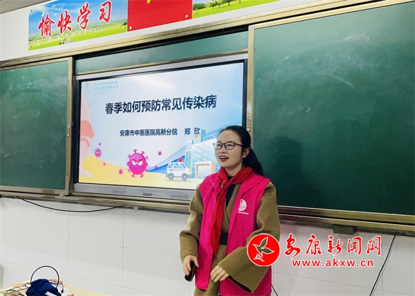 捐贈(zèng)儀式后,安康市中醫(yī)醫(yī)院志愿者在教室內(nèi)開展了知識(shí)講座,為學(xué)生們講解了春季如何預(yù)防常見傳染病、七步洗手法等知識(shí),孩子們聽得津津有味,并和志愿者積極互動(dòng)。