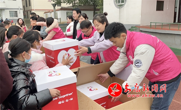 “這里面是新衣服、新鞋!”“哇,足球、跳繩,感謝叔叔阿姨!”操場(chǎng)上,孩子們迫不及待地打開暖流包、體育包禮盒,隨后,紅彤彤的臉上綻放出燦爛笑容。