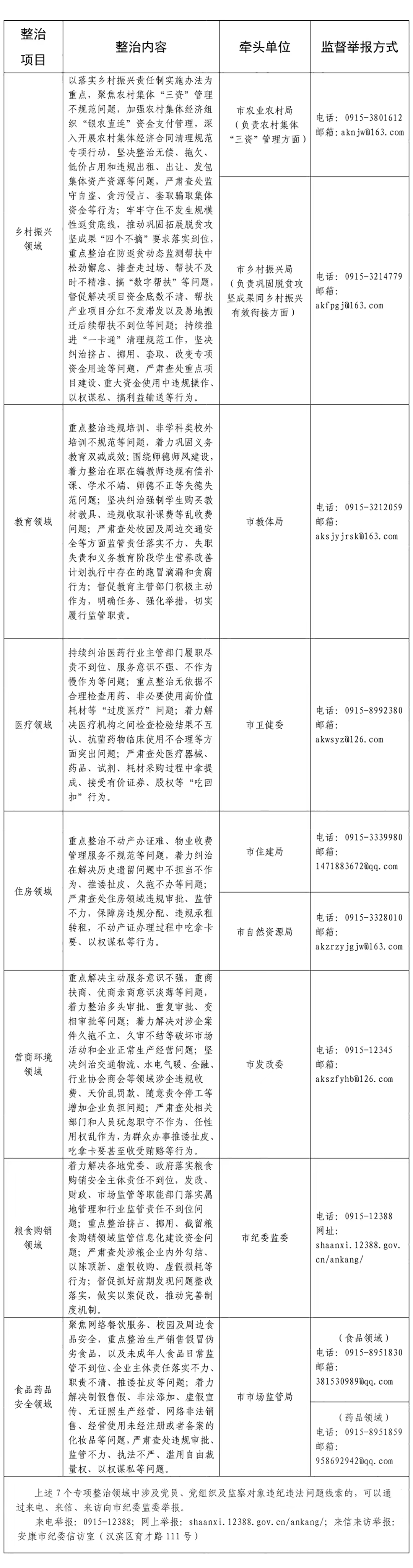 安康市紀(jì)委監(jiān)委公布2023年群眾身邊腐敗和作風(fēng)問題專項(xiàng)整治內(nèi)容及監(jiān)督舉報(bào)方式