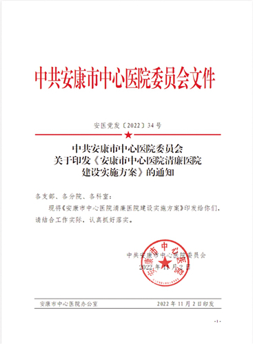 記者:2022年11月2日,安康市中心醫(yī)院黨委印發(fā)了《安康市中心醫(yī)院清廉醫(yī)院建設(shè)實(shí)施方案》。今后一個(gè)時(shí)期,醫(yī)院如何圍繞方案,全面推進(jìn)清廉醫(yī)院建設(shè),切實(shí)把清廉要素融入全方位推動(dòng)醫(yī)院高質(zhì)量發(fā)展全過程各方面,營造風(fēng)清氣正的政治生態(tài)和良好發(fā)展環(huán)境?