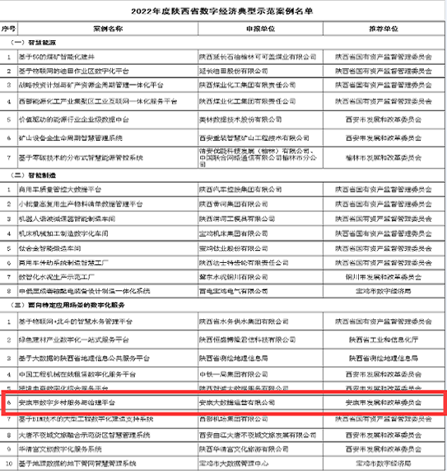 本網(wǎng)訊(通訊員 張騫)近日,陜西省發(fā)展和改革委員會發(fā)布了《關(guān)于公布2022年度陜西省數(shù)字經(jīng)濟(jì)典型示范案例的通知》,由安康市發(fā)改委推薦,中國建設(shè)銀行援建,安康大數(shù)據(jù)公司承建的“安康市數(shù)字鄉(xiāng)村服務(wù)與治理平臺”成功入選。