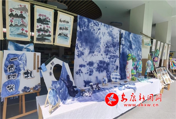 與此同時,每個班的孩子們用紙、筆等材料表達著自己的奇思妙想,青花瓷、剪紙、水墨、泥塑、紅黃藍暢享……一幅幅手工作品展現著他們對美好的期待。