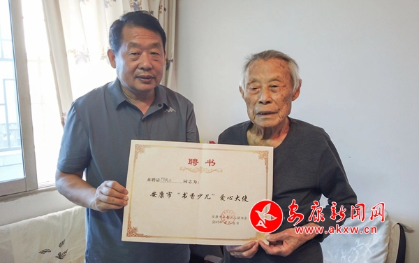 6月28日,安康市書香少兒讀書會負責人來到漢陰縣城,慰問93歲的老黨員鄺民三,聘請他為安康市書香少兒讀書會“愛心大使”。