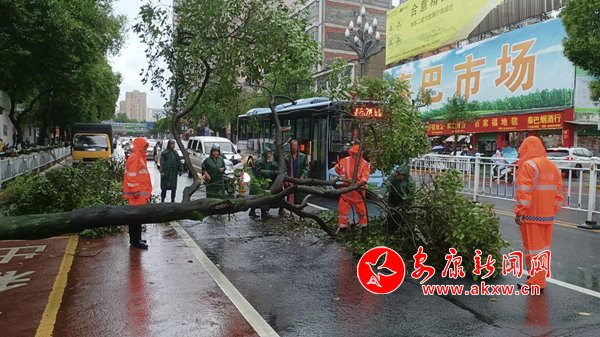 在濱江大道、大橋路,搶險(xiǎn)隊(duì)員們對(duì)多處倒伏、斷枝樹木,火速組織養(yǎng)護(hù)人員及車輛,有序投入搶險(xiǎn)工作。他們手拿電鋸、砍刀等工具,對(duì)受損樹木進(jìn)行修剪,對(duì)倒伏樹枝進(jìn)行清除,對(duì)傾斜樹木進(jìn)行扶正加固并及時(shí)清理殘枝敗葉,及時(shí)排除安全隱患,保障過往車輛和行人安全。