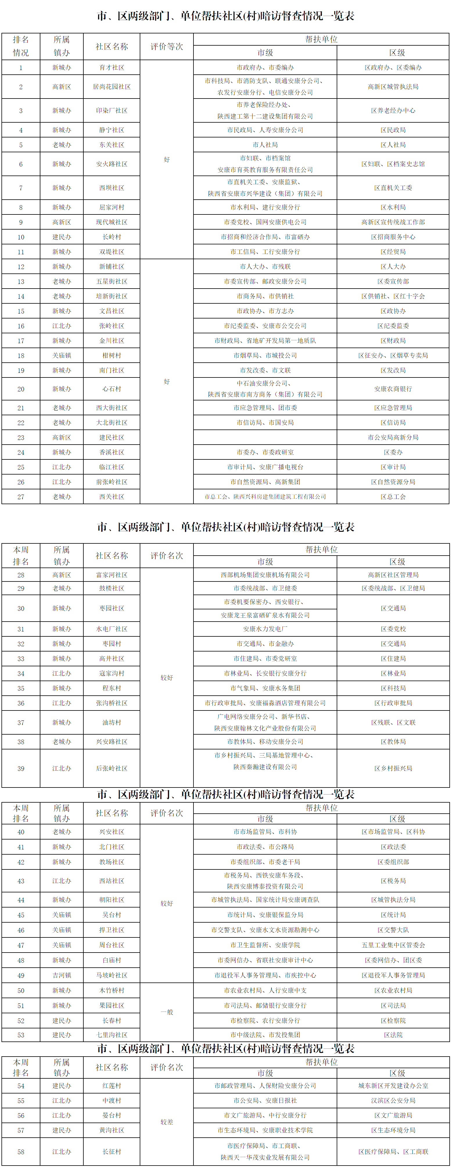 附:市、區(qū)兩級部門、單位幫扶社區(qū)(村)暗訪督查情況一覽表