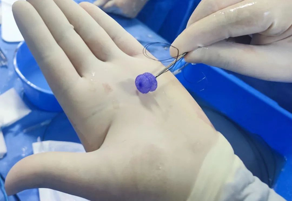 患者為16歲女性,經(jīng)全面檢查,診斷為室間隔缺損需行手術治療。因患者及家屬對手術的期望及更高的心理需求,市中心醫(yī)院副院長、心血管病醫(yī)院院長任暉和心血管內科二病區(qū)王東主任醫(yī)師團隊討論后,擬采用我國自主研發(fā)的MemoSorb全降解封堵器系統(tǒng)行室間隔缺損封堵術。因為全降解封堵器植入體內后,在完成心臟缺損的修補功能后會逐步降解,最終達到介入無植入、植入無殘留的理想結果,能滿足了廣大先心患兒及家屬的心理需求。
