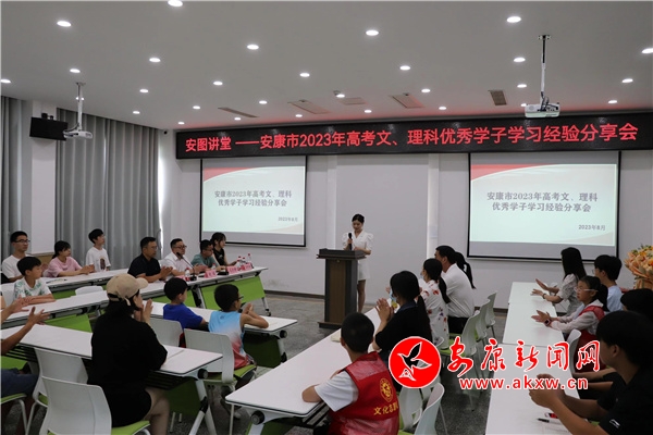 本網(wǎng)訊(通訊員 王庭德)8月1日上午,我市高考優(yōu)秀學(xué)子張昕楠、吳欣燃學(xué)習(xí)經(jīng)驗(yàn)分享會(huì)在安康市圖書館多功能報(bào)告廳舉行。