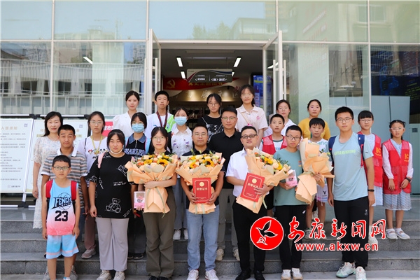 活動(dòng)伊始,圖書館向張昕楠、吳欣燃兩位優(yōu)秀學(xué)子獻(xiàn)花、贈(zèng)送讀書卡感謝他們的到來(lái),并祝賀他們?nèi)〉脙?yōu)異的成績(jī)。
