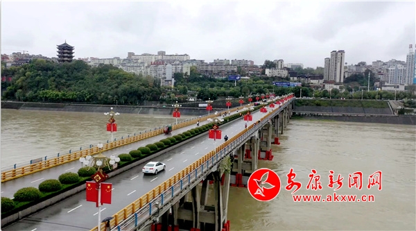 隨著節(jié)日的臨近,安康城區(qū)大街小巷節(jié)日氣氛不斷升溫,新安裝的漢江一橋燈桿上的五星紅旗一字排開迎風(fēng)招展、鮮艷奪目,莊嚴(yán)隆重的氣息撲面而來。站在江南老城堤上俯瞰車水馬龍的街道,美麗的綠化與鮮紅的國旗交相輝映,構(gòu)建出一幅熱烈和諧的城市景觀圖。