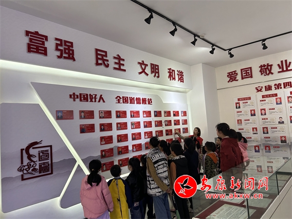 志愿者利用非遺互動墻組織孩子們學(xué)習(xí)《紅軍老祖》的故事,通過文字、圖片以及志愿者的講解讓孩子們直觀了解英雄事跡,了解到“紅軍老祖”這種尊稱背后,寄托著人民群眾對紅軍真誠、淳樸、久遠(yuǎn)的熱愛和懷念。隨后,志愿者帶孩子們參觀“安康好人館”,“安康好人館”分成前言板塊、全國道德模范及中國好人板塊、陜西道德模范及陜西好人板塊、安康道德模范板塊,培養(yǎng)和樹立孩子們“誠實(shí)守信”“助人為樂”“孝老愛親”“敬業(yè)奉獻(xiàn)”“見義勇為”的文明意識。最后,志愿者將孩子們帶到書畫展廳,通過參觀、講解的方式,讓孩子們感受傳統(tǒng)文化的藝術(shù)魅力,希望孩子們學(xué)習(xí)藝術(shù)作品的構(gòu)圖、色彩搭配、線條等藝術(shù)手法并運(yùn)用到自己的學(xué)習(xí)當(dāng)中。