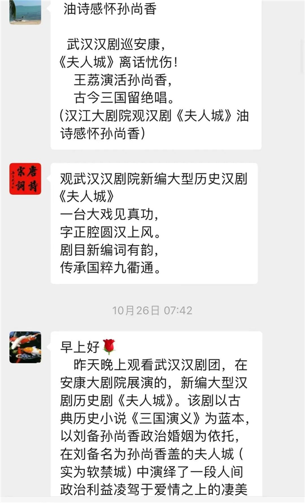 每場演出結(jié)束后,都有不少走出劇場的觀眾對其贊不絕口,悠揚(yáng)婉轉(zhuǎn)的唱腔、行云流水的身段、再加上精致的舞美效果,巧妙的劇情編排,被各位演員老師句句經(jīng)典、段段動情的表演所感染,紛紛寫下自己的觀后感!
