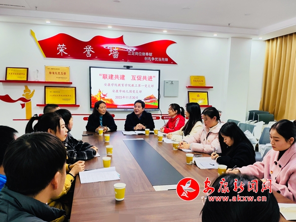 本網(wǎng)訊(通訊員 王國穎)11月30日,安康學(xué)院教育學(xué)院教工第一黨支部與安康市幼兒園黨支部聯(lián)合開展“聯(lián)建共建 互促共進(jìn)”主題黨日活動。