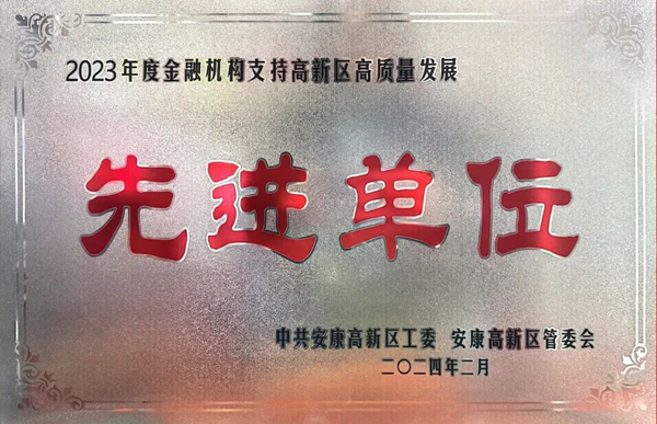 安康農(nóng)商銀行獲評“2023年度金融機構(gòu)支持高新區(qū)高質(zhì)量發(fā)展先進單位”榮譽稱號
