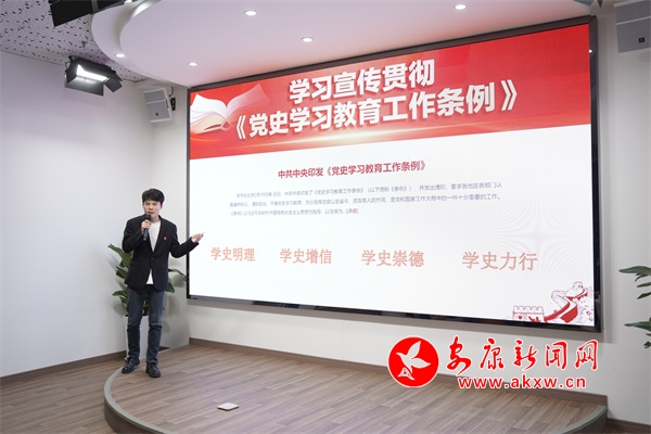 活動中,市委黨校青年教師分享《中國共產黨陜西安康歷史》第一卷(1921-1950),講述新民主主義革命時期的安康黨史,通過情景演繹再現(xiàn)安康紅色革命歷史中的英雄人物,從紅色文化遺存、革命先輩感人事跡中闡釋中國共產黨初心使命,引人深思、催人奮進。
