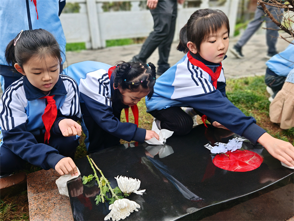 隨后少先隊(duì)員們?cè)诶蠋煄ьI(lǐng)下來(lái)到烈士陵園。隊(duì)員們拿起手中的抹布為革命先烈們擦拭墓碑,并號(hào)召同學(xué)們學(xué)習(xí)英雄先輩的紅色故事,時(shí)刻準(zhǔn)備著,努力成長(zhǎng)為能夠擔(dān)當(dāng)民族復(fù)興大任的時(shí)代新人。 最后,隊(duì)員們有序地參觀牛蹄嶺戰(zhàn)役紀(jì)念館,親身走近歷史,深刻體會(huì)革命志士的信仰和初心。