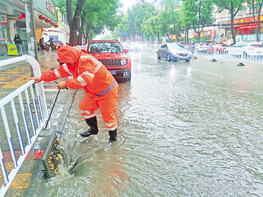 針對(duì)持續(xù)中到大雨的嚴(yán)峻形勢(shì),市市政園林處黨委充分發(fā)揮政治功能和組織優(yōu)勢(shì),堅(jiān)持人民至上、生命至上,城市道橋排水搶險(xiǎn)黨員突擊隊(duì)得令后,迅速進(jìn)入“戰(zhàn)時(shí)”狀態(tài),車輛、人員、裝備分組向著排澇最前沿火速集結(jié)。為在水中尋找更多井口,搶險(xiǎn)隊(duì)員徒手在臟水中摸尋并清除井蓋上的阻水雜物、撬開井蓋,加快積水排放,以最快的速度排除隱患,全力恢復(fù)城市正常道路交通秩序。一時(shí)間,隊(duì)員們衣服濕透,雨靴浸水,雨水和汗水交融,揮灑在茫茫雨海。RJ5安康新聞網(wǎng)