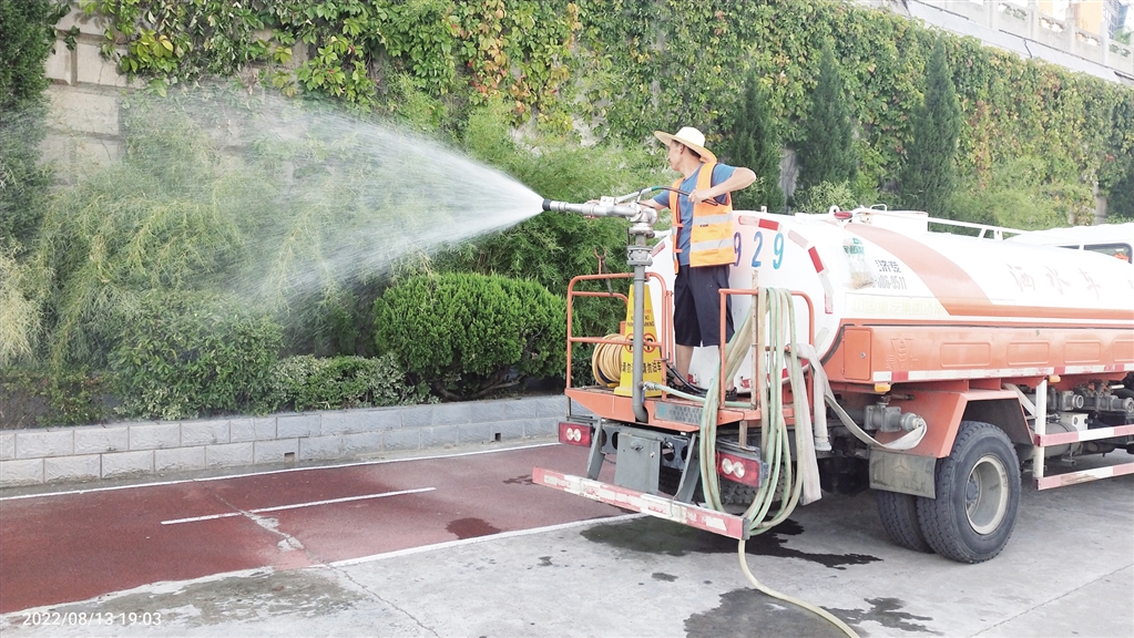 該處采取澆水、松土、修剪措施,黨員干部沖鋒在前,用行動(dòng)詮釋責(zé)任,用奉獻(xiàn)展示擔(dān)當(dāng),用“市政橙”扮靚“城市綠”,抗旱護(hù)綠一線黨旗紅。分區(qū)分段補(bǔ)水,全覆蓋抗旱護(hù)綠。該處采取“分區(qū)域、分時(shí)段、分批次澆灌”方式,對中心城區(qū)主次干道、公園廣場等公共綠地進(jìn)行抗旱保苗作業(yè)。堅(jiān)持水車澆灌、人工管灌和設(shè)施噴灌等綜合作業(yè)方式,嚴(yán)格落實(shí)“車輛全上、設(shè)備全開、晝夜加班、全力以赴”的工作要求,按照細(xì)澆漫灌、澆足澆透的原則,日均出動(dòng)抗旱澆水人員60余人次、灑水車20余臺(tái)次,應(yīng)澆盡澆,確保162萬平方米公園綠地的綠化苗木得到充分補(bǔ)水。松土遮陰保濕,全要素抗旱護(hù)綠。針對行道樹、灌木帶、草坪及地被植物的不同受旱程度和耐旱能力,加大澆灌頻率,對易旱和新栽苗木進(jìn)行重點(diǎn)澆灌,并適時(shí)除草、松土、圍堰,防止土壤板結(jié),增進(jìn)土壤蓄水保濕能力;在漢江大橋主橋及北頭轉(zhuǎn)盤等草坪綠地采取自動(dòng)噴灌系統(tǒng)和人工拉管澆灌結(jié)合作業(yè),不留死角盲區(qū),全方位做好抗旱保綠工作,確?购当C缧Ч。錯(cuò)時(shí)錯(cuò)峰養(yǎng)護(hù),全方位抗旱護(hù)綠。錯(cuò)峰作業(yè),錯(cuò)時(shí)澆水,避開城市交通高峰期,避開高溫時(shí)段澆水,減少植物水分蒸發(fā)。同步組織專業(yè)技術(shù)人員對綠化養(yǎng)護(hù)、夜間澆水等作業(yè)情況進(jìn)行檢查指導(dǎo),發(fā)現(xiàn)問題現(xiàn)場立即整改,確保做到抗旱不停步、保綠顯成效。