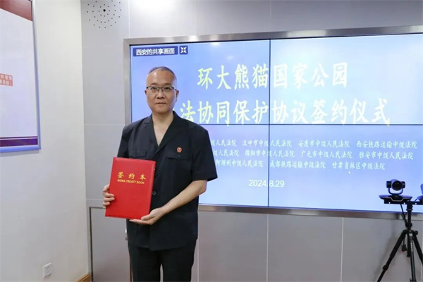 8月29日,陜西、四川、甘肅三地14家中院(即陜西省西安市、寶雞市、漢中市、安康市中級(jí)人民法院、西安鐵路運(yùn)輸中級(jí)法院與四川省的成都市、德陽市、綿陽市、廣元市、雅安市、眉山市、阿壩州中級(jí)人民法院、成都鐵路運(yùn)輸中級(jí)法院、甘肅省林區(qū)中級(jí)法院)共同簽署《環(huán)大熊貓國(guó)家公園司法協(xié)同保護(hù)協(xié)議》。簽約儀式采取視頻連線的形式召開,主會(huì)場(chǎng)設(shè)在西安市中級(jí)人民法院執(zhí)行指揮中心,其他各中院設(shè)分會(huì)場(chǎng),簽約儀式由西安市中級(jí)人民法院黨組成員、副院長(zhǎng)李智平主持。安康中院黨組成員、副院長(zhǎng)劉新建及行政庭全體干警參加儀式。