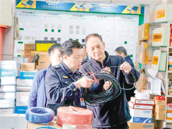 執(zhí)法人員對電線電纜企業(yè)進(jìn)行檢查