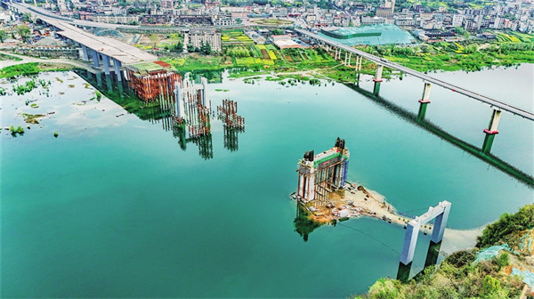 橋梁上部結(jié)構(gòu)開始施工 安康新關(guān)廟漢江大橋“破水而出”