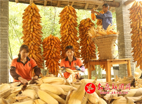 有的忙于運送,有的忙于剝穗,有的忙于上架,豐收的喜慶洋溢在每一個角落。Kn6安康新聞網(wǎng)