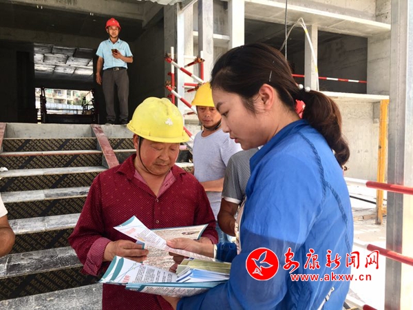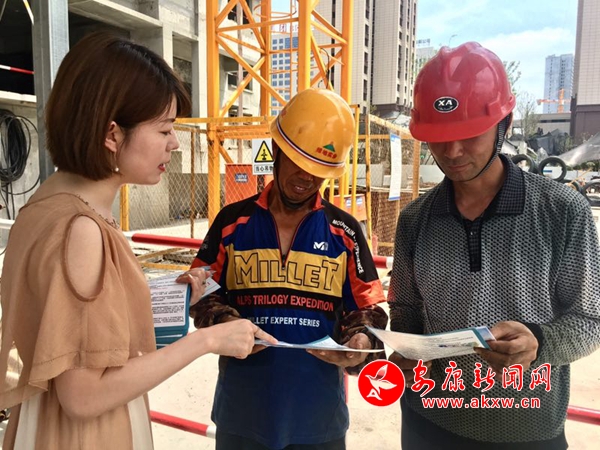 在高新區(qū)部分建筑工地,安康市和漢濱區(qū)人社部門通過擺放咨詢臺、放置展板、發(fā)放印制的宣傳資料、現(xiàn)場答疑等形式,對《社會保險法》《工傷保險條例》在維護職工權益方面的重要意義、工傷保險參保繳費政策、工傷認定申辦程序以及工傷保險待遇等方面進行宣傳。