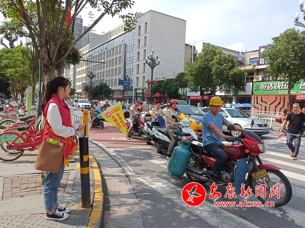我市積極開展“我踐行,我?guī)ь^”文明交通志愿服務(wù)活動,眾多志愿者身穿紅馬甲、手拿小黃旗在城區(qū)內(nèi)各十字路口有條不紊地指揮、疏導(dǎo)交通,為車輛、行人通行安全保駕護(hù)航。據(jù)悉,這些志愿者有來自各單位的工作人員,也有各社區(qū)的退休老人,主動請纓,為城市交通文明做貢獻(xiàn)。