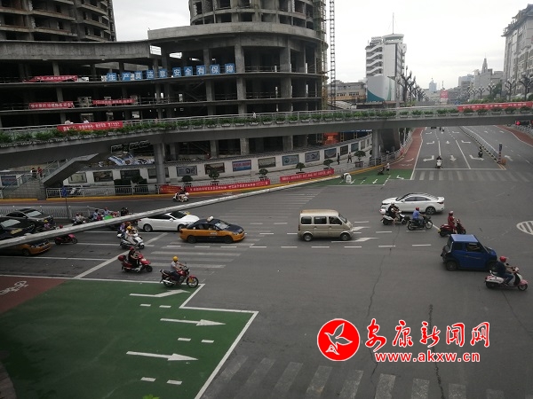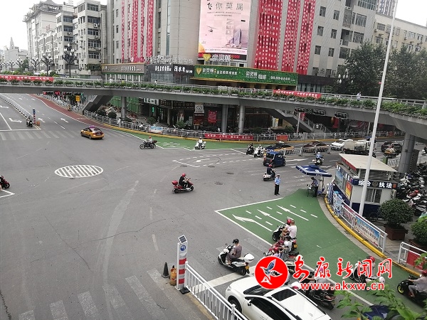 8月2日,記者在中心城區(qū)馬坎十字發(fā)現(xiàn)了道路新增綠色引導(dǎo)區(qū)域,記者從漢濱交警大隊了解到,目前城區(qū)除了馬坎十字之外,中心廣場十字、一橋橋南十字,東堤十字的三車等待區(qū)也在同步施劃中,警示車輛各行其道。
