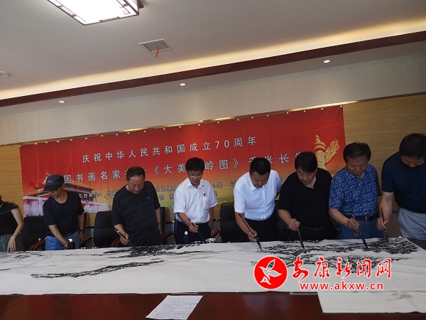 本網訊(實習記者 雷文鈺)8月10日,全國書畫名家共繪《大美秦嶺》千米長卷活動走進安康,黨建畫院張文祥院長與安康眾多書畫名家共繪《大美秦嶺》千米長卷之安康卷。