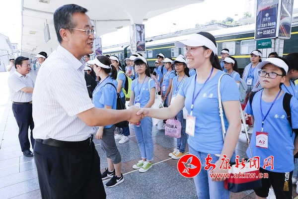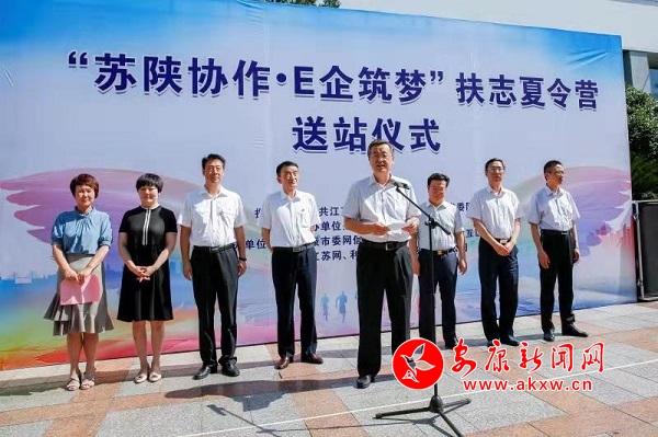 本網(wǎng)訊(記者 張世虎)8月12日下午,“蘇陜協(xié)作·E企筑夢(mèng)”扶志夏令營(yíng)送站儀式在安康火車站舉行,來(lái)自我市的30名優(yōu)秀學(xué)生和5位老師踏上奔赴南京列車,將開(kāi)啟一段美好的研學(xué)之旅。省委網(wǎng)信辦副主任黃永宏,安康市委常委、宣傳部長(zhǎng)羅雪劍出席并講話。