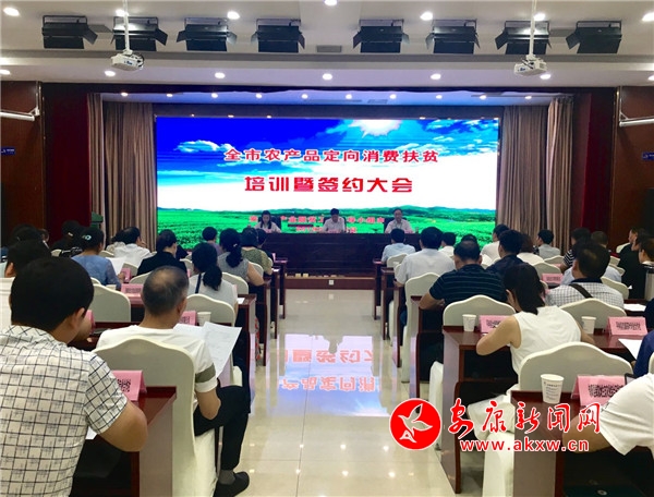 本網(wǎng)訊(實習記者 李隆均 馬娟 通訊員 崔世偉)8月22日,安康市農(nóng)業(yè)農(nóng)村局召開農(nóng)產(chǎn)品定向消費扶貧培訓暨采購合同簽約會,全市58家農(nóng)業(yè)企業(yè)、合作社參加了會議,其中20家農(nóng)業(yè)企業(yè)、合作社現(xiàn)場展示了我市生態(tài)富硒農(nóng)產(chǎn)品。