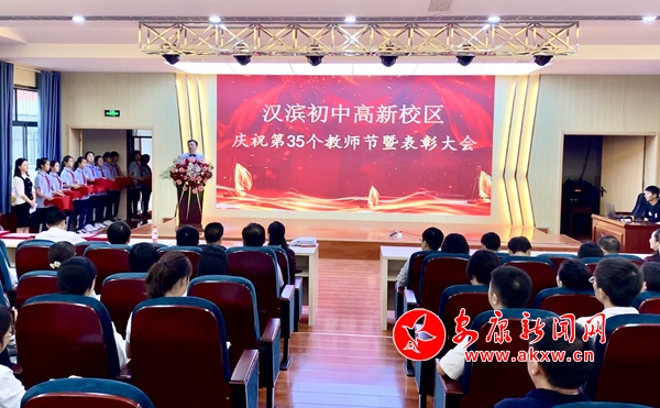 本網(wǎng)訊 (記者 李隆均 實習(xí)記者 李瑤)9月10日,是第35個教師節(jié),也是漢濱初中高新校區(qū)第3個教師節(jié)。為慶祝佳節(jié)、樹立典型、弘揚先進,漢濱初中高新校區(qū)舉行了2019年慶祝教師節(jié)暨教師表彰大會。