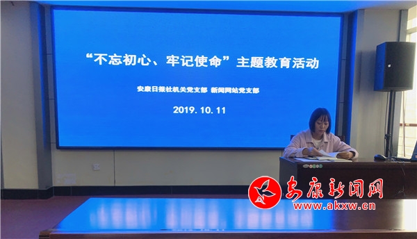 本網(wǎng)訊 (記者 郭倩)初心即情懷,使命乃擔(dān)當(dāng)。初心表達(dá)價值追求,使命體現(xiàn)奮斗目標(biāo)。10月11日上午,安康日報社機(jī)關(guān)支部與安康新聞網(wǎng)站支部聯(lián)合開展“不忘初心、牢記使命”主題教育活動,以“找回初心”為號召,以強化宗旨意識和理想信念為目的,立足崗位,“教、學(xué)”相融合,同步提升新聞采編業(yè)務(wù)專業(yè)技能和綜合業(yè)務(wù)能力,多樣形式開展好主題教育活動。