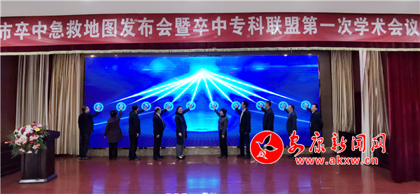 發(fā)布儀式上,與會領導為我市卒中專科聯盟首批成員26家單位授牌,并共同啟動安康市卒中急救地圖。