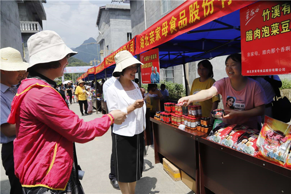 活動(dòng)現(xiàn)場(chǎng),鎮(zhèn)坪縣和竹溪縣各具特色的農(nóng)副產(chǎn)品在竹葉村進(jìn)行集中展銷,臘肉、茶葉、葵花油、百花蜜以及各種地方特色手工藝品吸引了往來(lái)游客紛紛品嘗與購(gòu)買。
