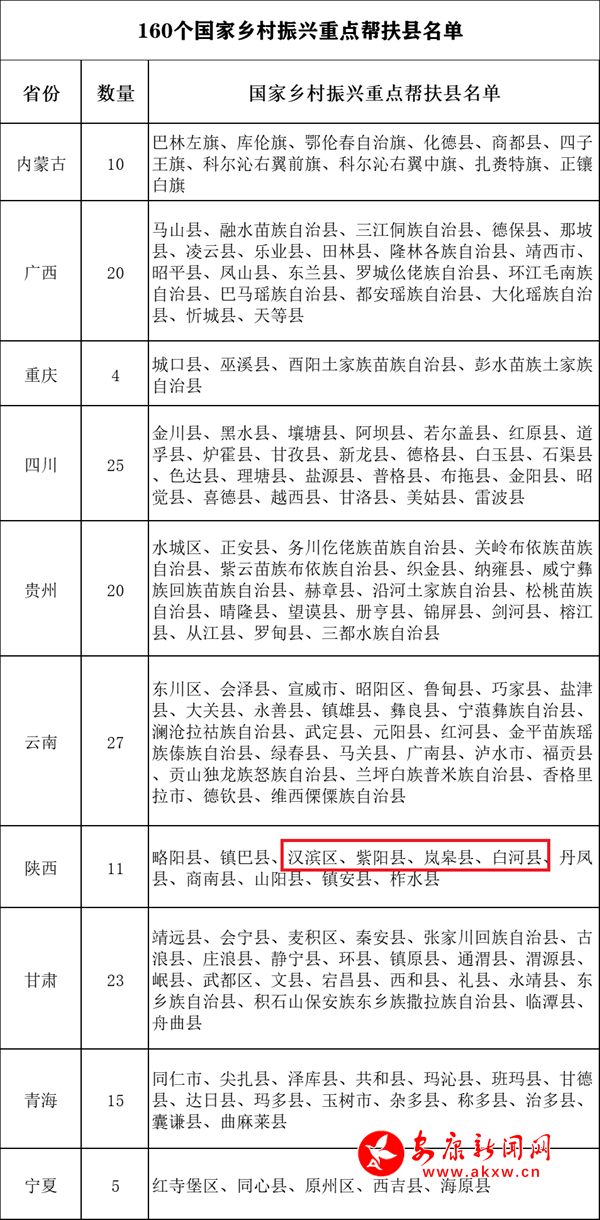 本網(wǎng)訊(記者 王慧芳)據(jù)國(guó)家鄉(xiāng)村振興局消息,8月27日,中央農(nóng)村工作領(lǐng)導(dǎo)小組辦公室、國(guó)家鄉(xiāng)村振興局公布了160個(gè)國(guó)家鄉(xiāng)村振興重點(diǎn)幫扶縣名單。xMS安康新聞網(wǎng)