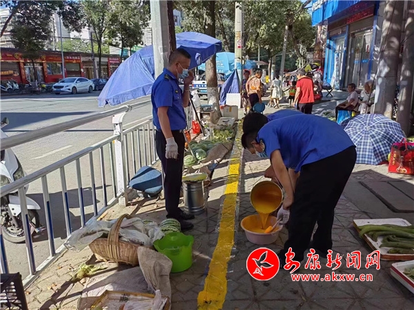 6月24日,記者來到江北大道安康農(nóng)商銀行(勞動支行)附近,在現(xiàn)場記者看到,安康市城市管理執(zhí)法局漢濱分局關(guān)廟執(zhí)法大隊相關(guān)工作人員正在針對張溝橋路段臨時攤位線毀損問題進行及時補劃,同時針對擺攤戶進行全國文明城市創(chuàng)建宣傳,并提出相關(guān)經(jīng)營要求,要求商戶不得越線經(jīng)營、不得影響行人通行及交通安全,自覺維護臨時攤點周邊的環(huán)境衛(wèi)生、秩序。“針對張溝橋路段附近村民自產(chǎn)自銷農(nóng)產(chǎn)品流動經(jīng)營叫賣現(xiàn)象,為規(guī)范管理張溝橋便民市場經(jīng)營秩序,方便附近居民生活出行,我們于今日對流動的商販攤位進行劃線規(guī)范,劃線規(guī)范后,對不遵守相關(guān)規(guī)定出線占道經(jīng)營,影響行人通行及交通安全的行為,我們將依法給予相應(yīng)處罰措施。”安康市城市管理執(zhí)法局漢濱分局關(guān)廟執(zhí)法大隊綜合股股長陳超表示。