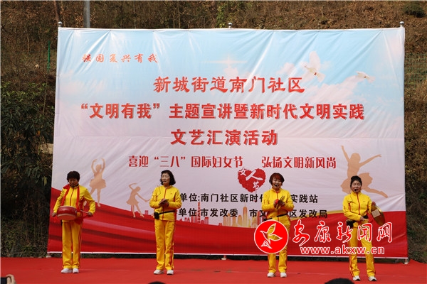 本網(wǎng)訊(記者 趙漪湉)為傳播文明理念,弘揚時代新風(fēng),鞏固和提升創(chuàng)建全國文明城市工作成果,3月6日,市發(fā)改委、市文聯(lián)、漢濱區(qū)發(fā)改局、新城街道南門社區(qū)新時代文明實踐站聯(lián)合在南門社區(qū)成功舉辦“文明有我”主題宣講暨新時代文明實踐站文藝匯演。