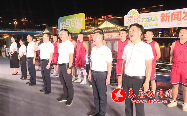 伴隨著一曲歡快的舞蹈《出水芙蓉》,新聞發(fā)布會正式拉開序幕。隨后,特色各異的文藝節(jié)目穿插進(jìn)行,舞蹈《活力寶貝》和歌曲《歡迎你到嵐皋來》,將現(xiàn)場氛圍引入一陣陣熱潮。第二屆巴山漢水“陜西村BA”體旅促商貿(mào)活動組委會各工作組組長、當(dāng)?shù)厍蜿?duì)和啦啦隊(duì)熱烈而又真誠地發(fā)出賽事宣言:“一座城服務(wù)一個人,好客嵐皋歡迎您!”。