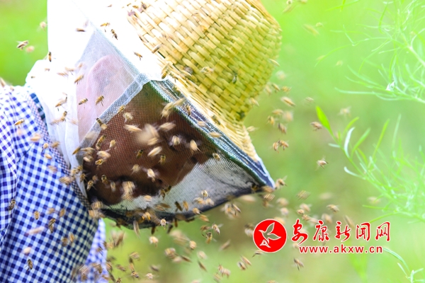 初夏,走進(jìn)漢濱區(qū)茨溝鎮(zhèn)營盤埡村四組中華蜂養(yǎng)殖園,青山環(huán)繞,溪水潺潺,百花綻放。河對(duì)岸山坡空地里,一排排密密麻麻、錯(cuò)落有致的蜂箱引人注目!