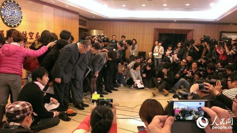 陳欣德說,飛機起飛4分鐘失聯(lián),今天天氣狀況符合飛行要求,具體原因待飛安會調(diào)查。圖為記者會現(xiàn)場。