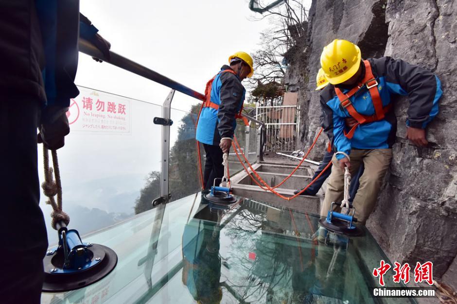 張家界天門(mén)山玻璃棧道換“新裝”